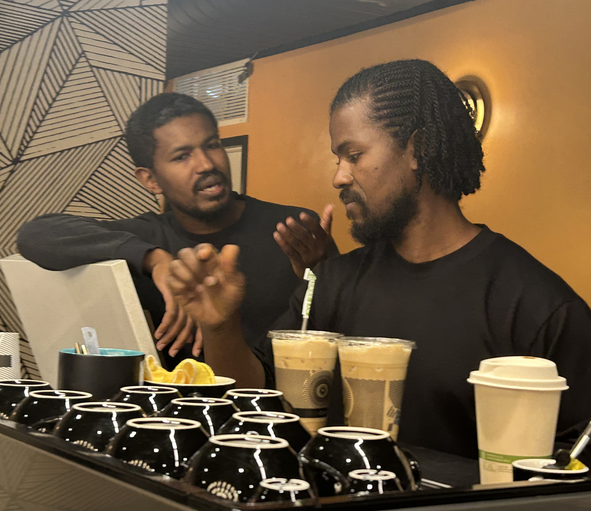 “That’s one of the things that makes Ginjan so important here. It’s a haven from what’s going on outside.” Just the other day, he continued, a mother with a sleepy toddler was harassed by the men on the curb; she sheltered in the coffee shop while her toddler napped in an armchair. “People had told us: ‘I don’t know what I would have done without you here.’”